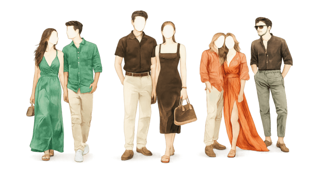 O branco é reservado à noiva, por isso pedimos, com carinho, que essa cor não seja utilizada durante todo o fim de semana, especialmente na cerimônia.